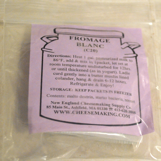 The first ingredient in my cheese Pascha recipe is farmer’s cheese. During the 12 years that I have been making this dish the availability of commercial farmer’s cheese has varied. No two cheesemakers can even agree on what farmer’s cheese is. Eventually my husband, the homebrewer, realized that it would be easier for us to make our own rather than hunt through stores every year. We settled on a culture from the New England Cheesemaking Supply Company (available for purchase locally at American Brewmaster) for a simple soft cheese called fromage blanc.