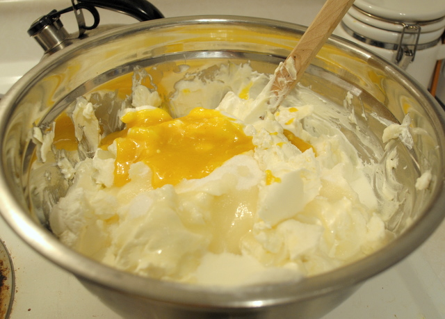 Add the custard to the fromage blanc and also add: 1/2 lb very soft butter, 1/4 cup whipping cream, 1/4 cup sour cream, and one more cup of sugar. I always have vanilla sugar made up in the pantry (put scraped vanilla bean pods into a container of sugar) so I use some of this in my cheese Pascha. If you don’t have vanilla sugar you can pour in vanilla extract. Start with 1/2 teaspoon and adjust to taste (or to smell if you’re not eating dairy while you make this).