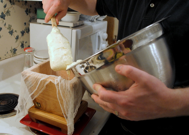 Move your drained fromage blanc to a large bowl. I had hoped to measure out exactly 4 pounds but our kitchen scale is inexplicably missing. (Did you borrow it? We need it back!) I ended up using all of the cheese which was probably too much.