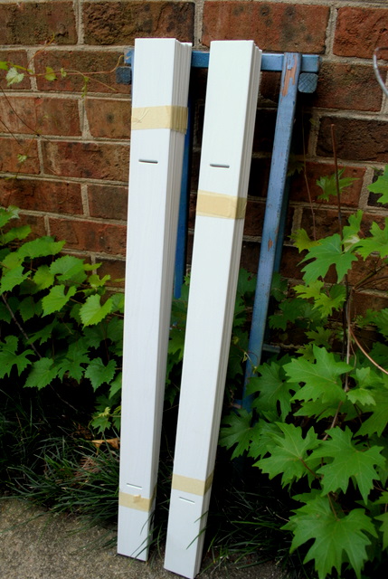 And I brought them home with me. They’re slats from blinds. I thought the holes could work to create a neat detail around the mirror. Tomorrow I’ll figure out how to put it all together.