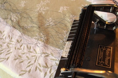 When Laurie pulled out this odd contraption I wasn’t quite sure what to make of it. It had odd rollers and some needles sticking out, but I couldn’t fathom how it would all work together. She had me start threading each needle while she ironed our test piece of fabric.