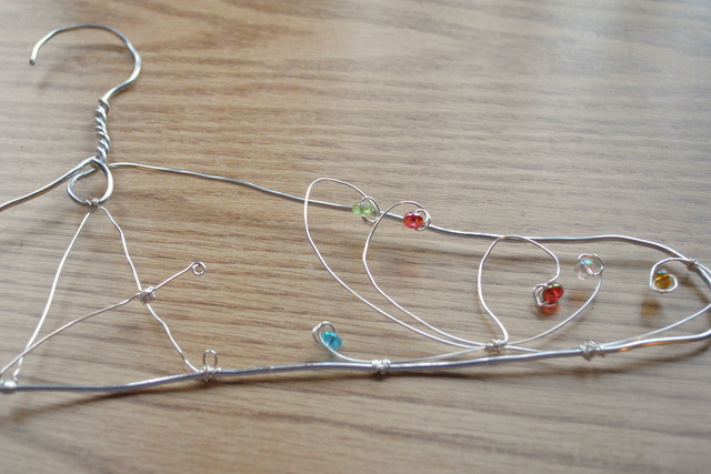 Did you guess what my wire work project would be? It’s a hanger! I found instructions to make a monogrammed hanger with beaded decorations and it looked kind of sweet. I may gift it to a certain baby I know who has a fancy new dress (or I may keep it for myself since we share a first initial).
